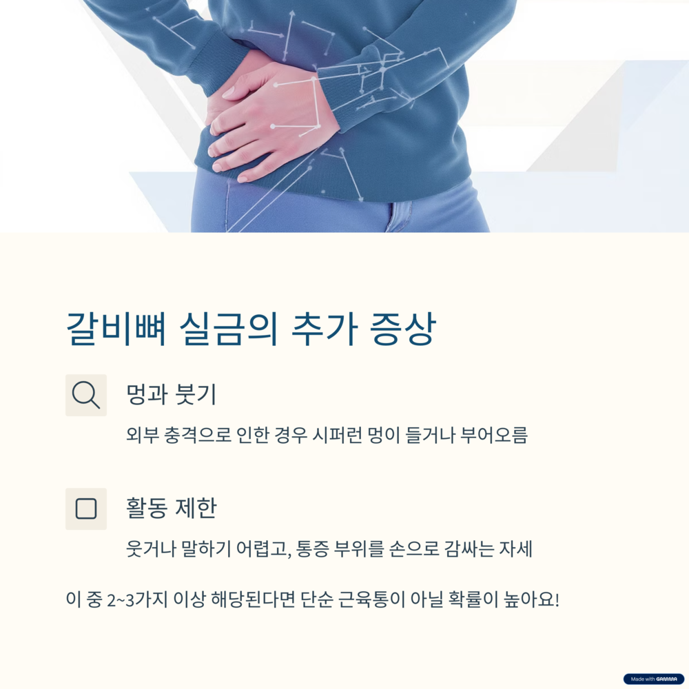 🔍 1. 이런 증상, 그냥 근육통 아니에요! (갈비뼈 실금 대표 증상 5가지)