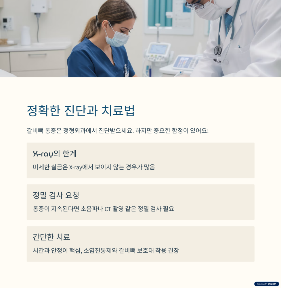 갈비뼈 통증으로 병원을 찾는다면 보통 '정형외과'를 방문하게 돼요. 병원에서는 가장 먼저 X-ray를 찍어보자고 할 거예요. 하지만 여기서 가장 중요한 함정이 있답니다!