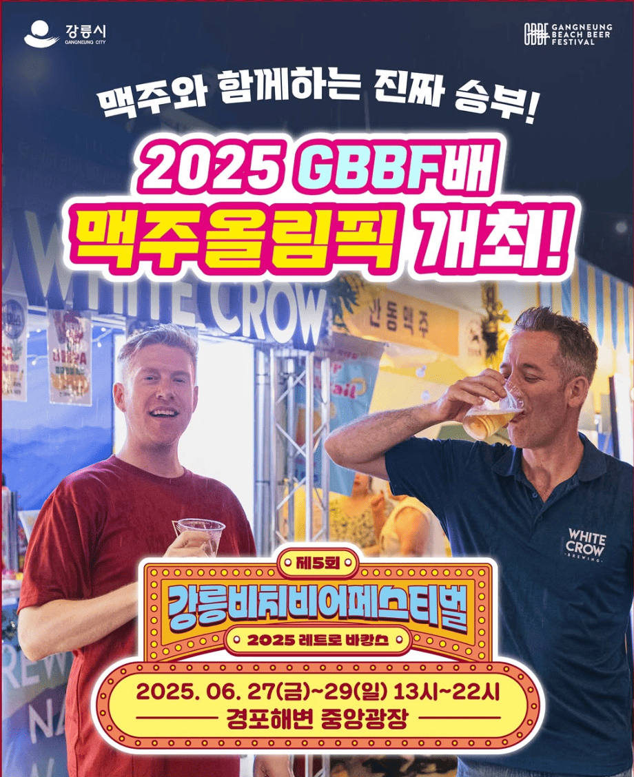 안녕하세요! 드디어 오늘! 6월의 마지막 주말을 뜨겁게 달굴 2025 강릉비치비어페스티벌(GBBF)이 화려한 막을 올렸어요.