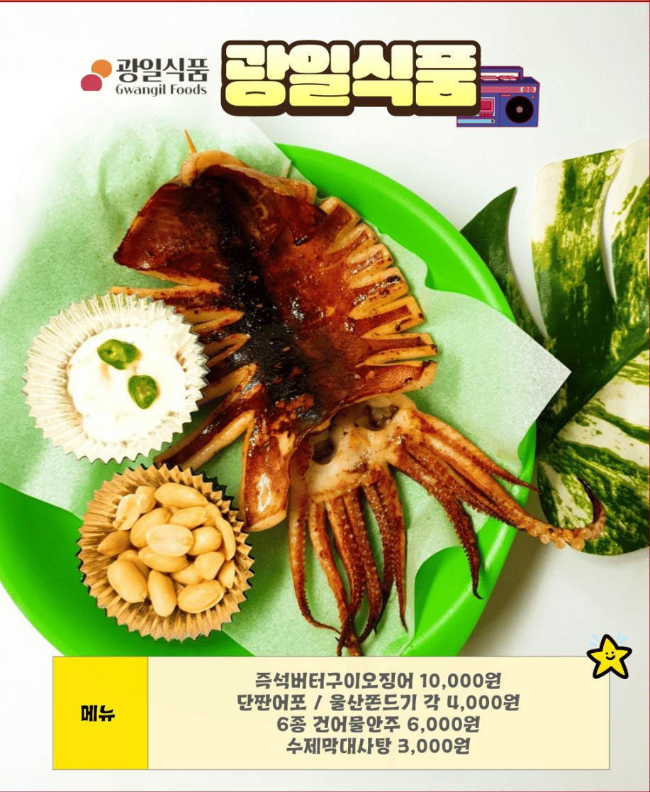 맥주만 마실 수는 없겠죠? 강릉을 대표하는 로컬 푸드 업체들도 총출동했어요. 감자전, 닭강정 같은 전통적인 메뉴부터 트렌디한 퓨전 요리까지!
