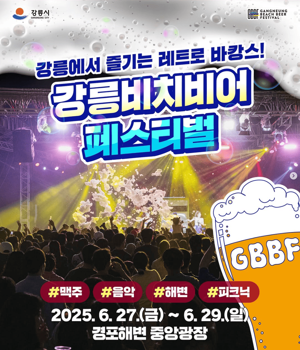 안녕하세요! 드디어 오늘! 6월의 마지막 주말을 뜨겁게 달굴 2025 강릉비치비어페스티벌(GBBF)이 화려한 막을 올렸어요.