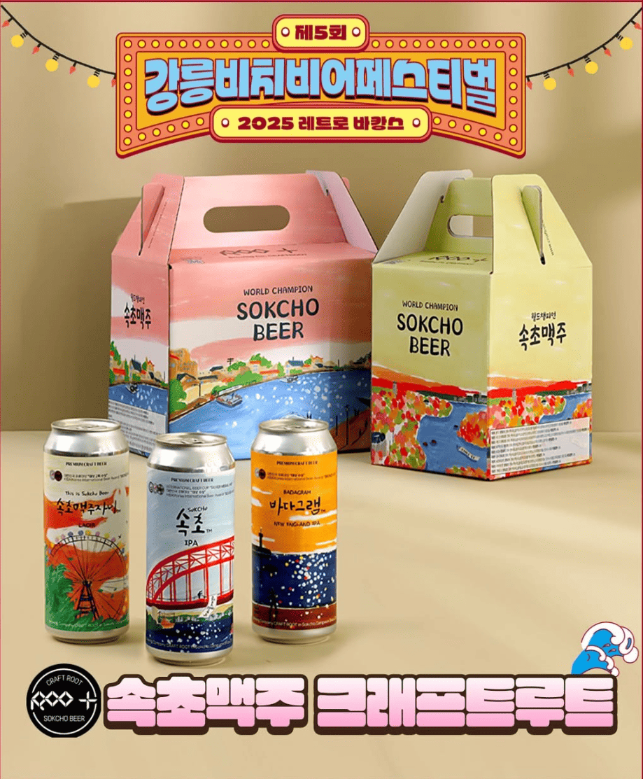 여기서 가장 중요한 포인트! 오직 GBBF에서만 맛볼 수 있는 한정판 '경포 맥주'를 절대로 놓치지 마세요. 경포의 청량함을 담아 만든 특별한 맥주로, 이번 축제의 '시그니처'라고 할 수 있답니다.