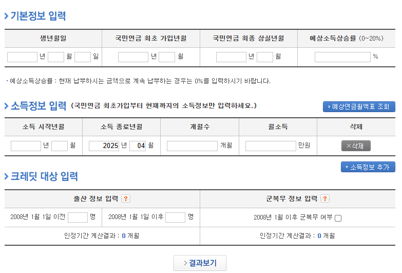 - ✅ 주민번호 필요 없이 가입기간, 소득만 입력하면 끝!