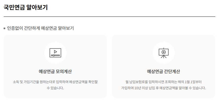 | 수령액 조회 | 국민연금 계산기 이용 |