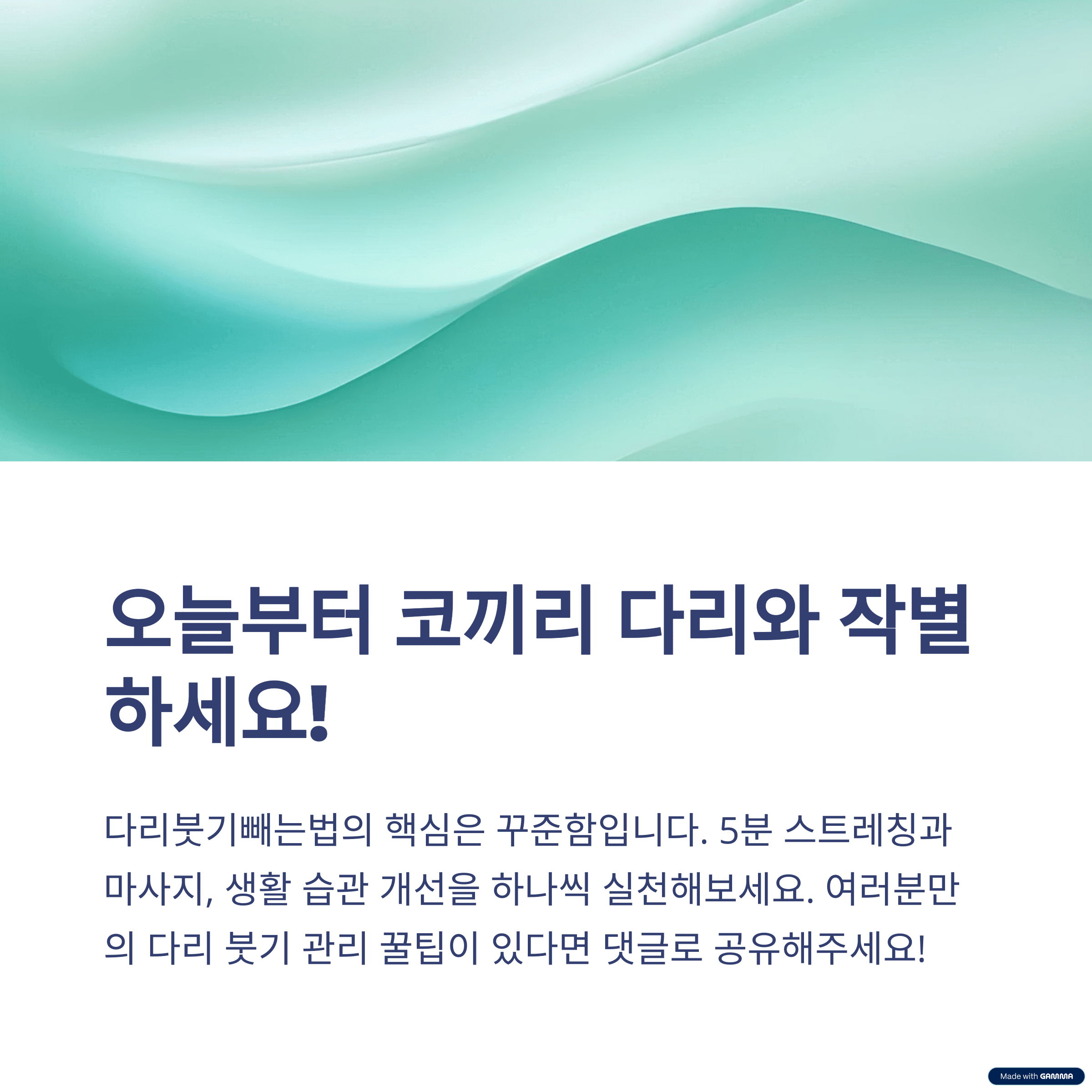 👉 오늘부터 코끼리 다리와 작별하고 가뿐한 내일을 맞이해보세요! 여러분만의 다리 붓기 관리 꿀팁이 있다면 댓글로 공유해주세요! 💬