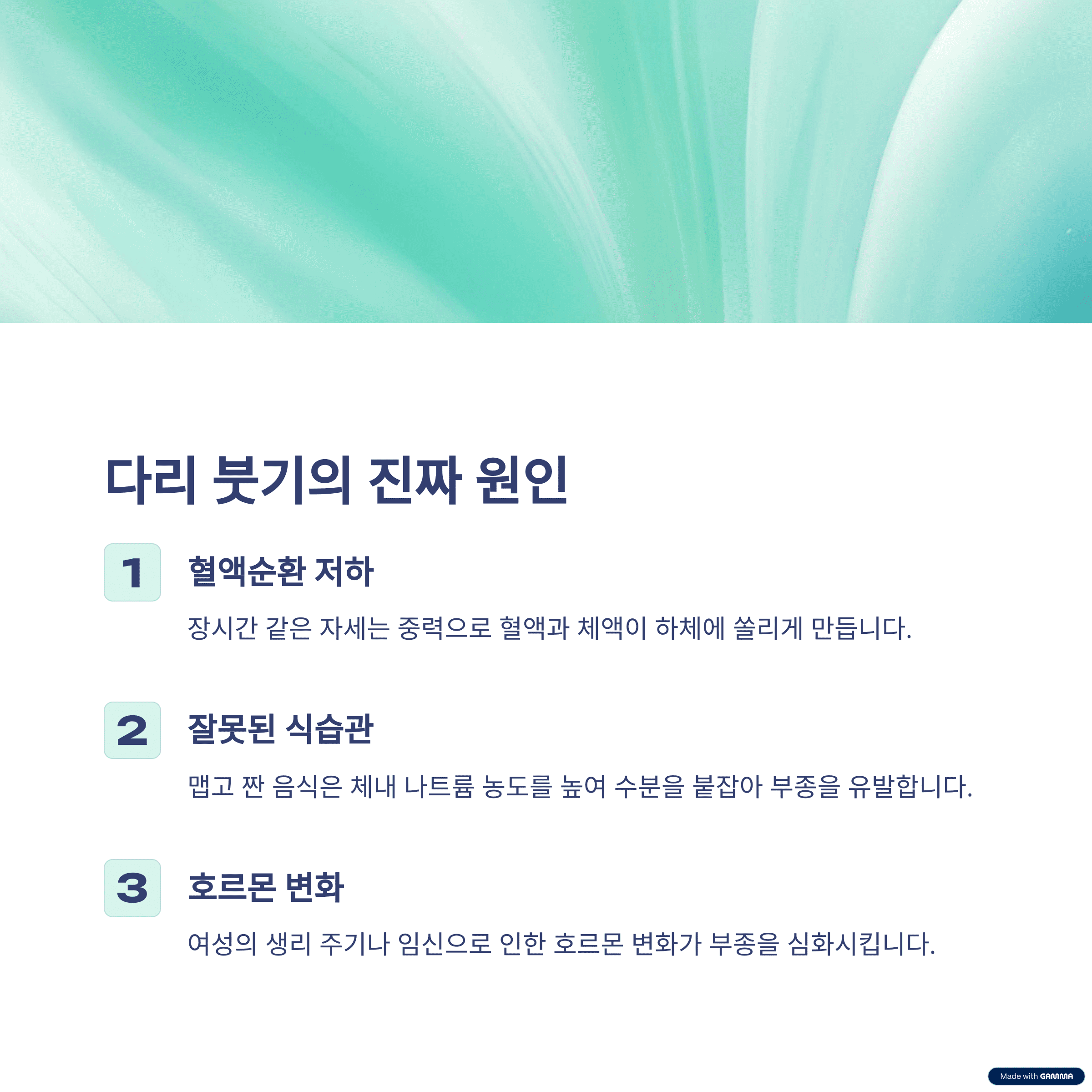 다리 붓기, 즉 하체 부종은 단순히 피곤해서 생기는 문제가 아닙니다. 정확한 원인을 알아야 효과적으로 대처할 수 있습니다.