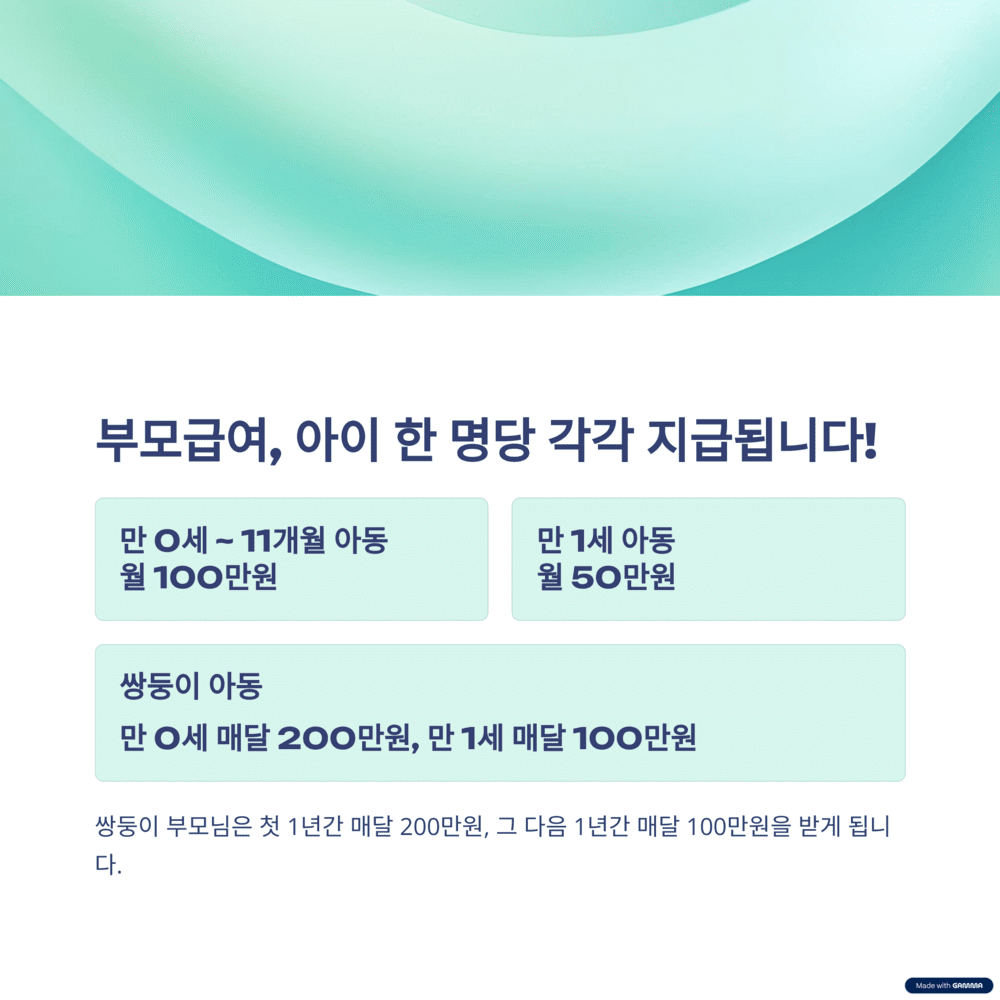 매달 든든하게! 부모급여 (쌍둥이면 2배로 받아요)