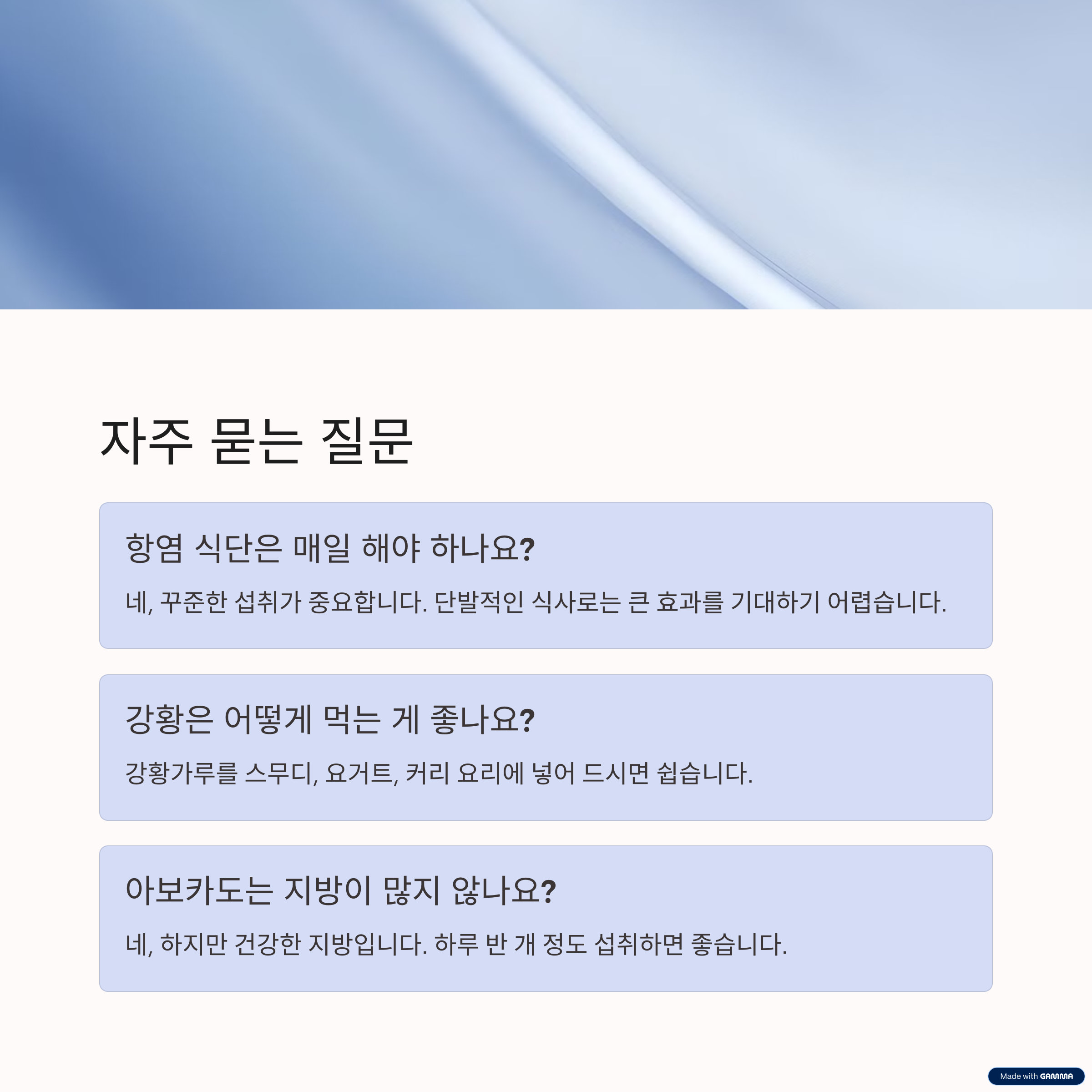우연히 항염식품에 대해 알게 되어 식단을 바꿨습니다.