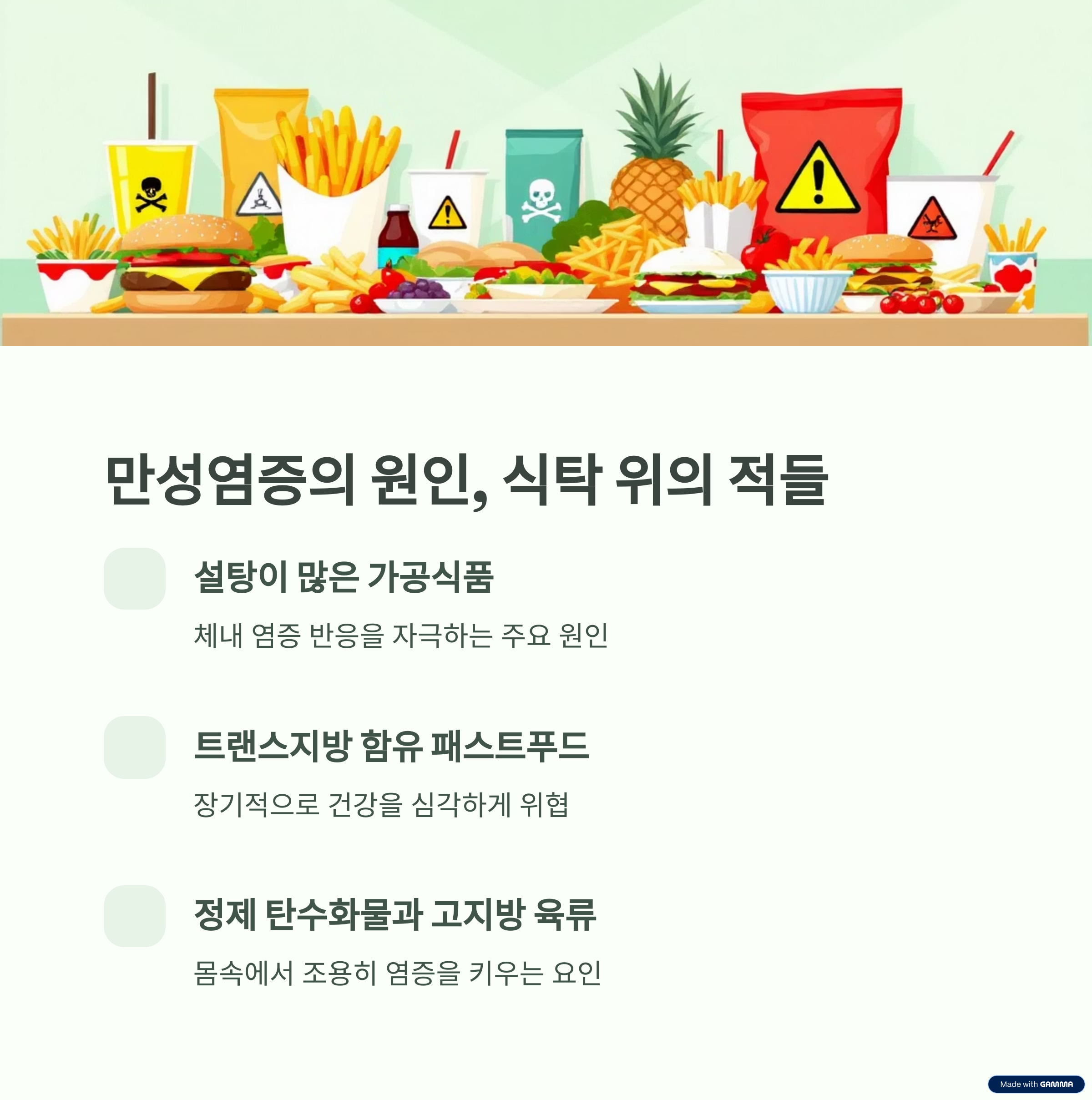 특히 잘못된 식습관은 염증을 키우는 주요 원인입니다.