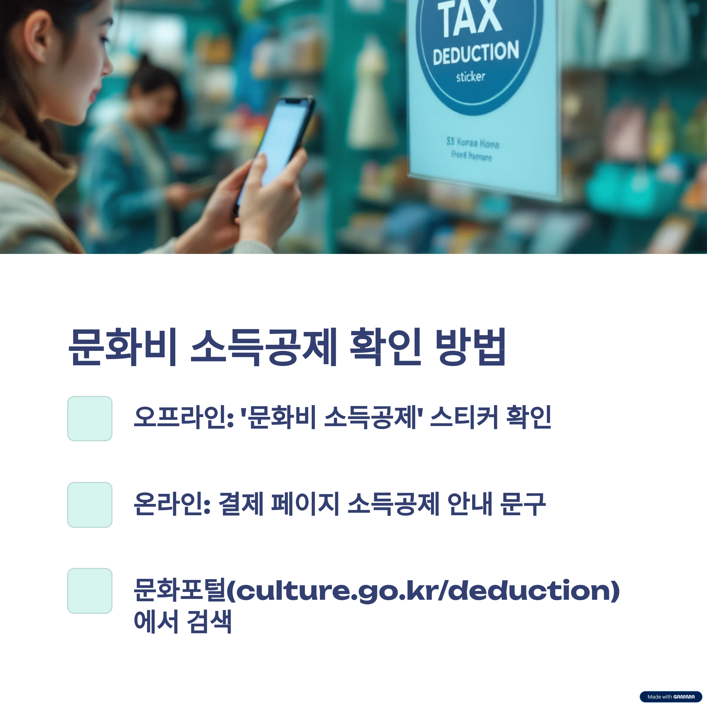 오프라인 서점이나 공연장 계산대에는 '문화비 소득공제' 스티커가 붙어 있습니다. 온라인의 경우, 결제 페이지에서 소득공제 안내 문구를 확인할 수 있습니다. 가장 정확한 방법은 '문화포털'의 문화비 소득공제 사이트(culture.go.kr/deduction)에서 사업자를 직접 검색해보는 것입니다.