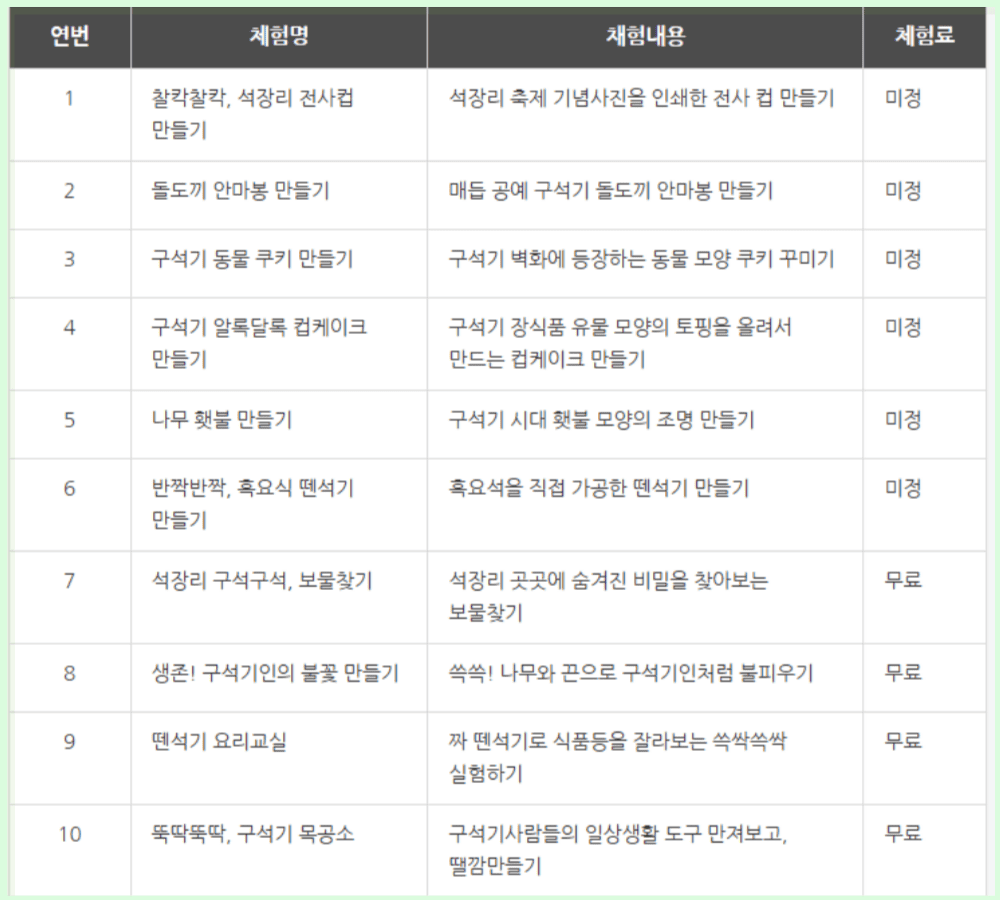 구석기 시대로 떠나는 시간여행으로, 가족 모두의 특별한 하루를 만들어보세요.