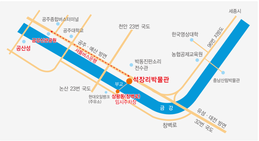 - 대중교통: 공주 시내버스 → ‘석장리박물관’ 정류장 하차