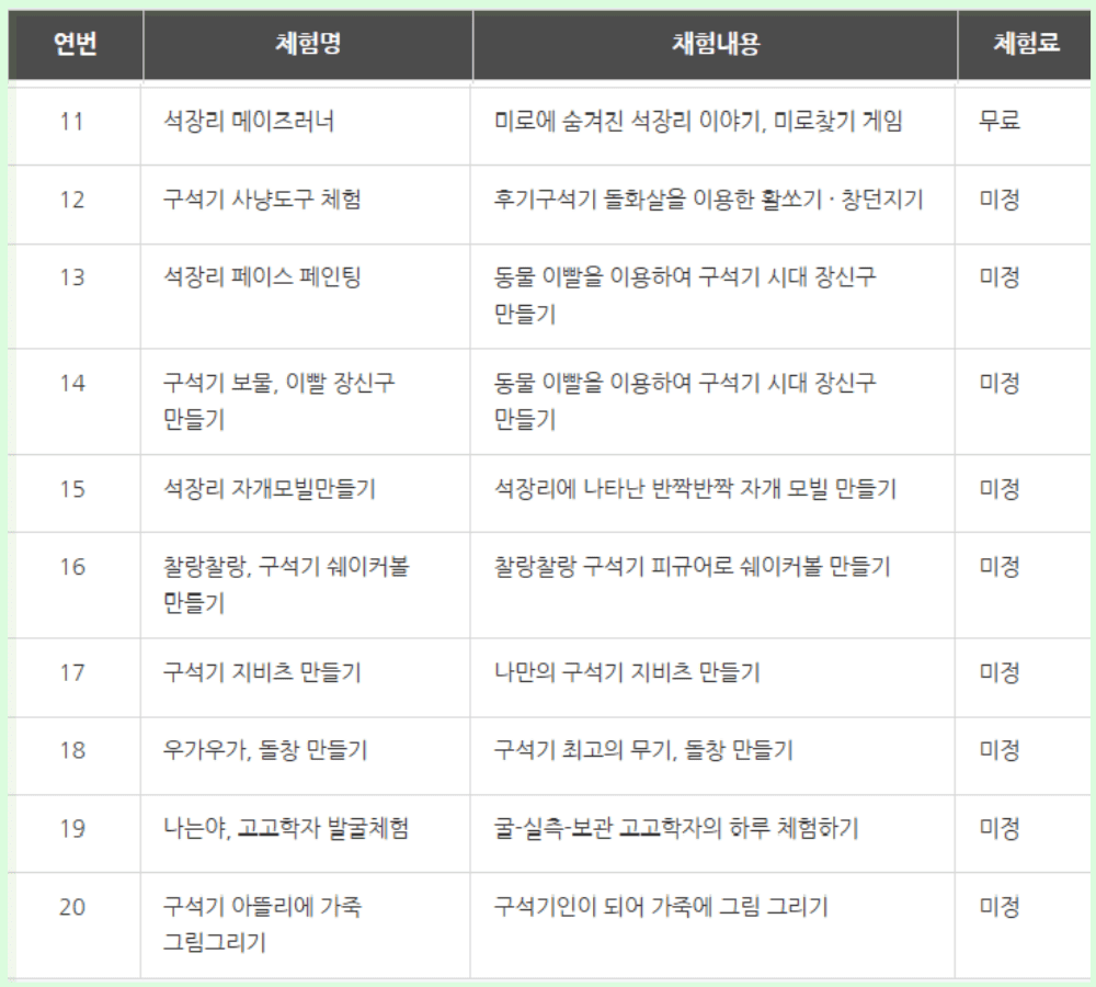 구석기 시대로 떠나는 시간여행으로, 가족 모두의 특별한 하루를 만들어보세요.
