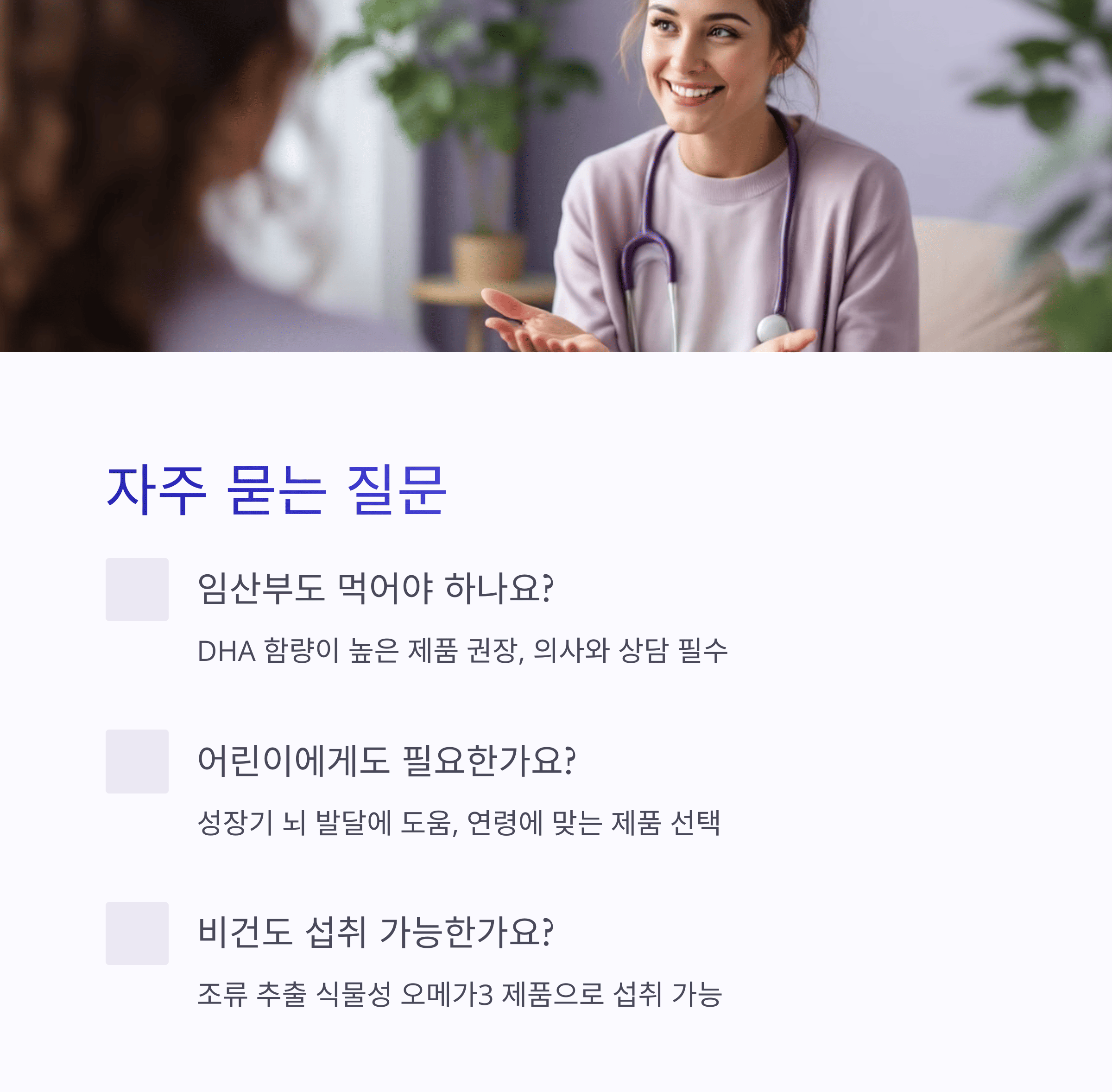 EPA보다 DHA가 풍부한 제품을 권장하며, 담당 의사와 상담 후 섭취하세요.