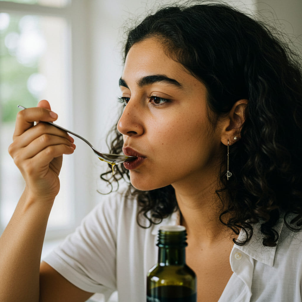 A네, 주의가 필요해요. 올리브 오일도 결국 기름이라 소화기관에 부담이 될 수 있어요. 특히 췌장염이나 담석증이 있는 분은 증상이 악화될 수 있으니 반드시 의사와 상담해야 해요. 처음 드실 때 속이 더부룩하다면 억지로 한 숟가락을 다 채우지 마시고, 반 숟가락부터 시작해서 몸이 적응할 시간을 주세요.