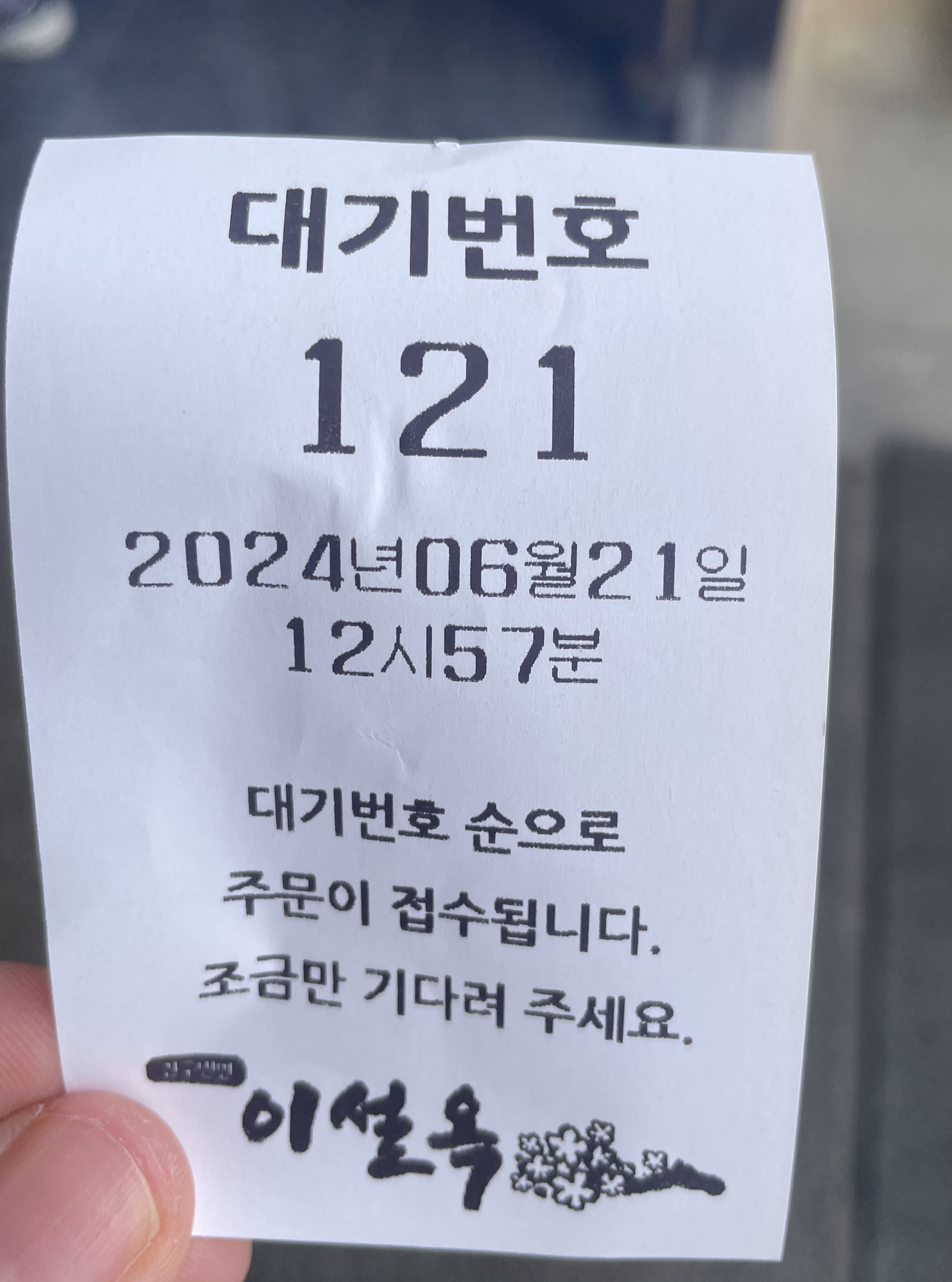 아빠는 다른데 가자고 하셨는데, 그래도 왔으니 먹고가자고해서 부모님과 언니는 차에서 대기하고 제가 번호표 뽑아서 앞에서 기다렸답니다. 대기하면서 대형 선풍기가 있어서 덥지는 않았어요.