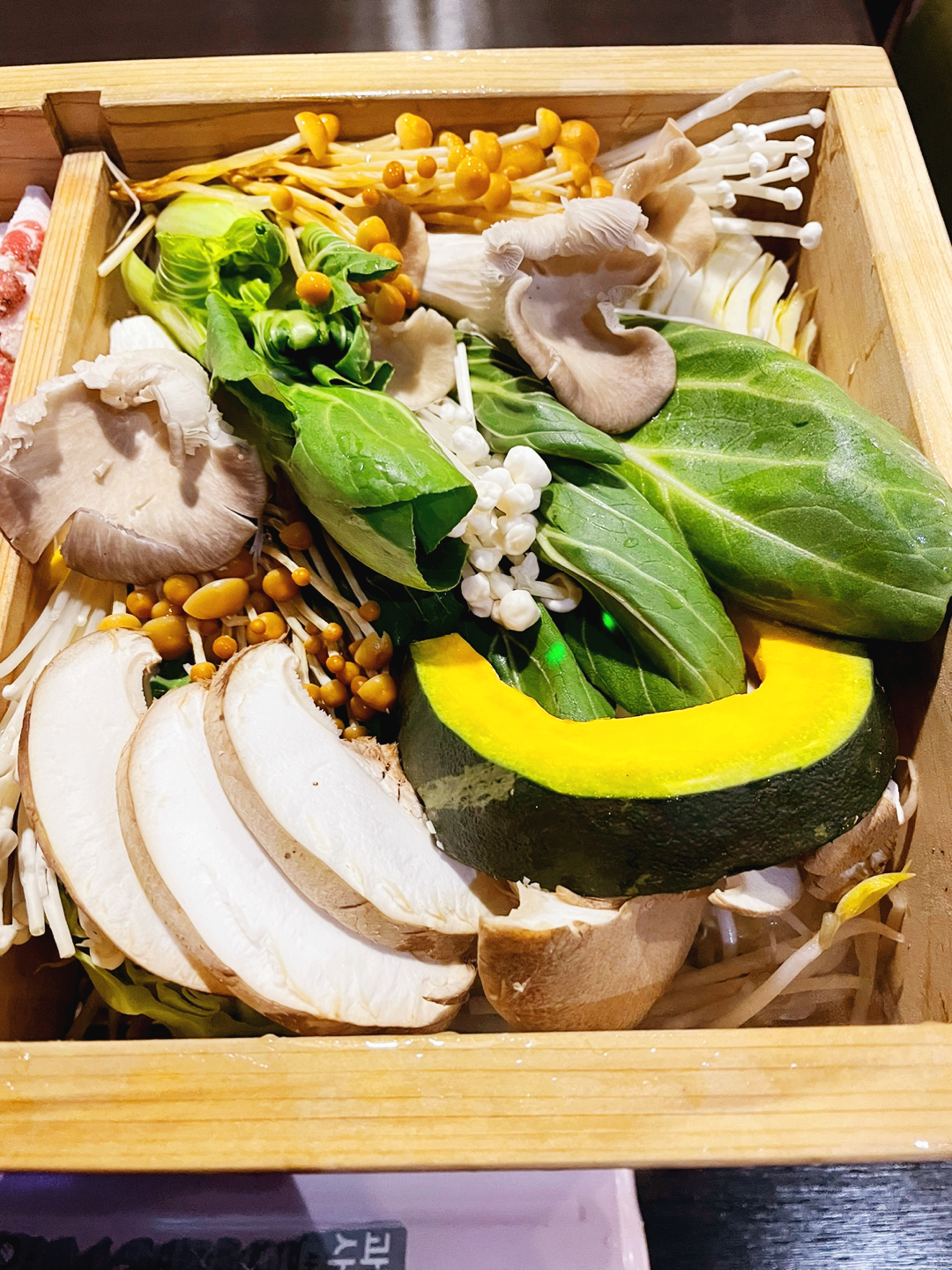 채소와 함깨 소스에 콕 찍어 먹으면 완전 꿀맛이에요.