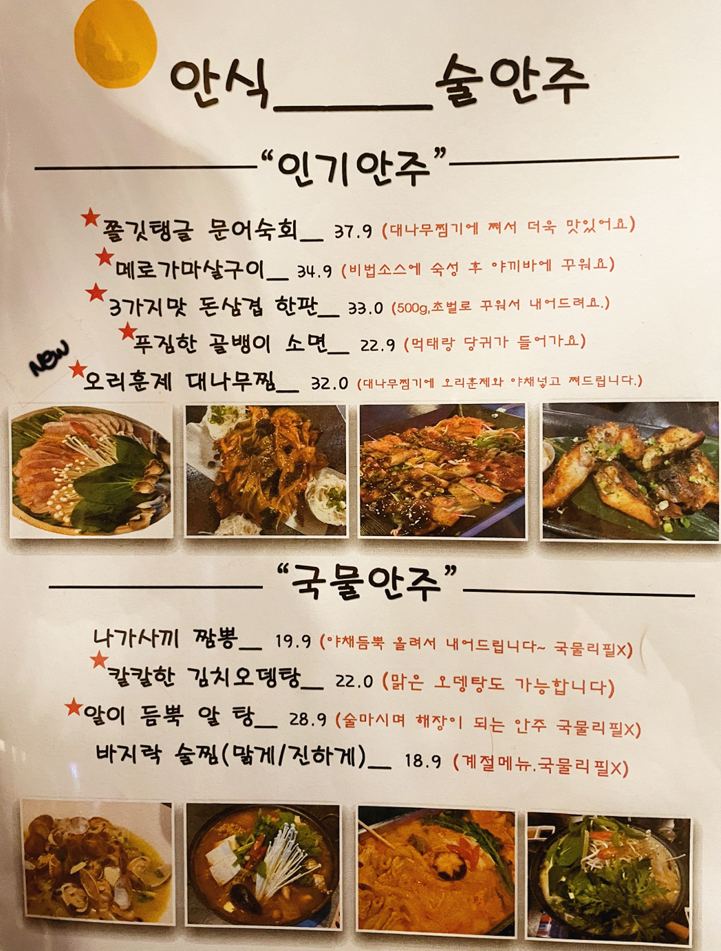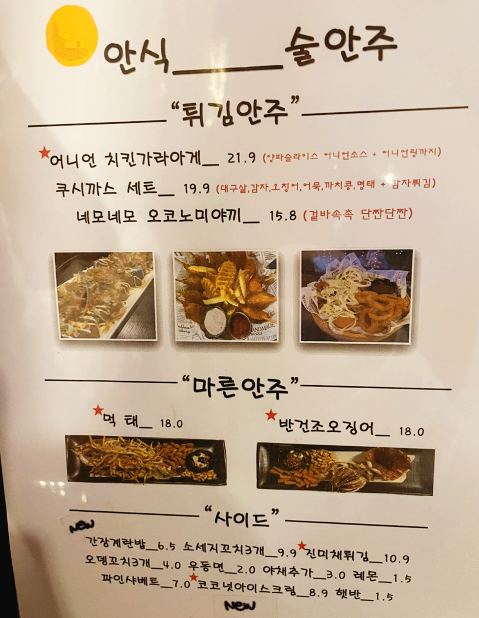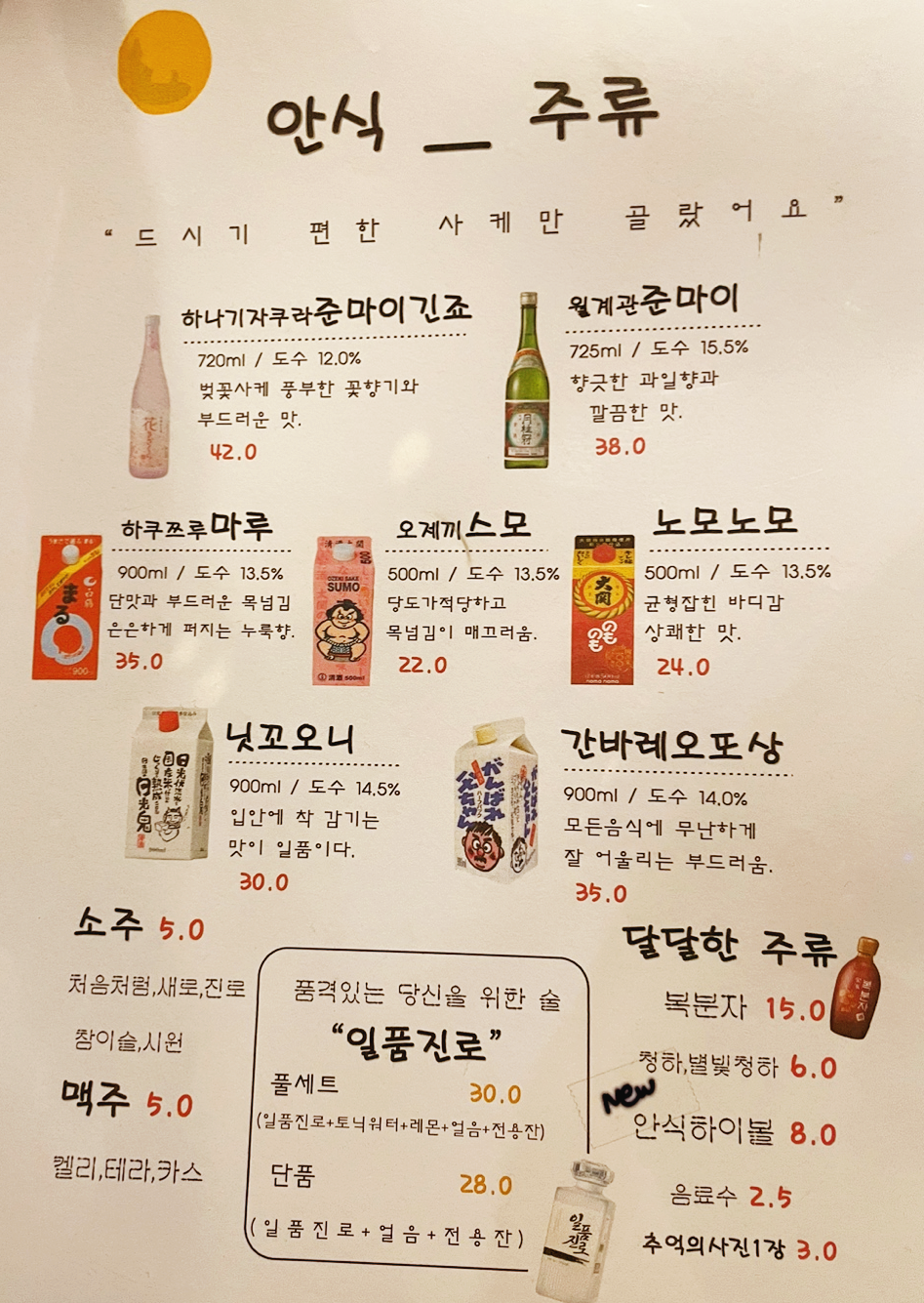 - 각종 주류 (소주, 맥주, 사케 등) - 5,000원~
