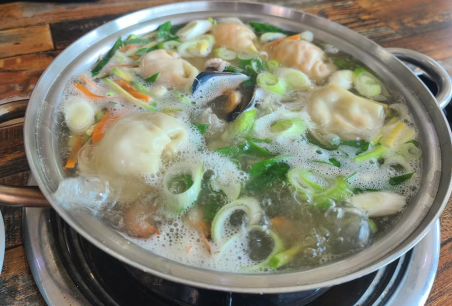 우리가 찾아간 석판만두는 점심시간이 조금 지난 시간이라 그런지 손님은 많이 없었습니다. 처음엔 영업 안하시는 줄 알았습니다. 이곳 석판만두의 만두전골은 전골이라기 보다는 해물칼만두에 가까운거 같았습니다.