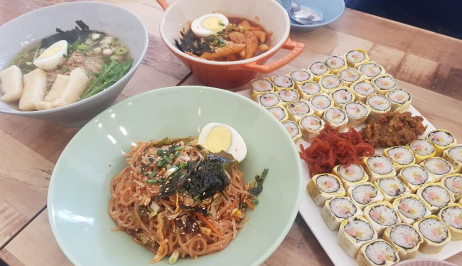 종이컵 구경하고 실내 구경하다 보니 주문한 계란말이김밥과 떢볶이, 그리고 쫄면이 나왔습니다. 식기들도 분식집 같지 않게 약간 고급스러운 느낌이었습니다. 우리가 주문한 쫄면 두 가지 그리고 빨간 색이 맛있어 보이는 떢볶이가 서빙되었습니다.