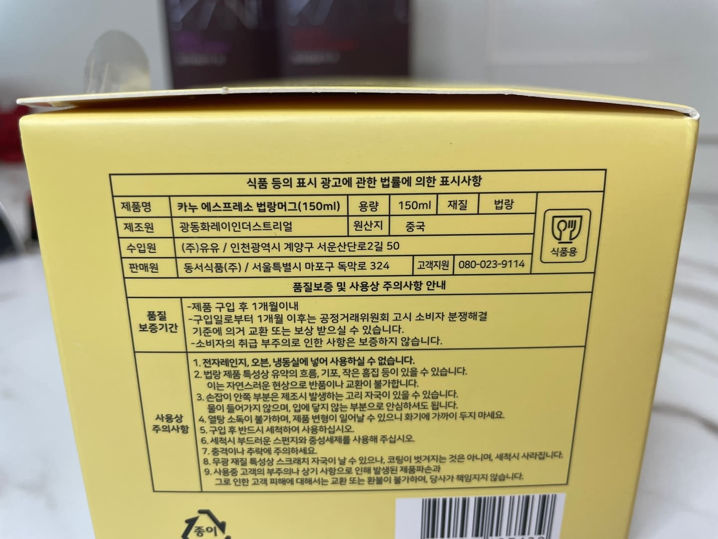 함께 배송된 법랑머그랍니다. 용량은 150ml이고 색깔은 랜덤으로 배송되니 참고하세요. 사실 이번에 법랑머그를 받은게 두번째인데요. 이번엔 예쁜 노란색이 왔네요.