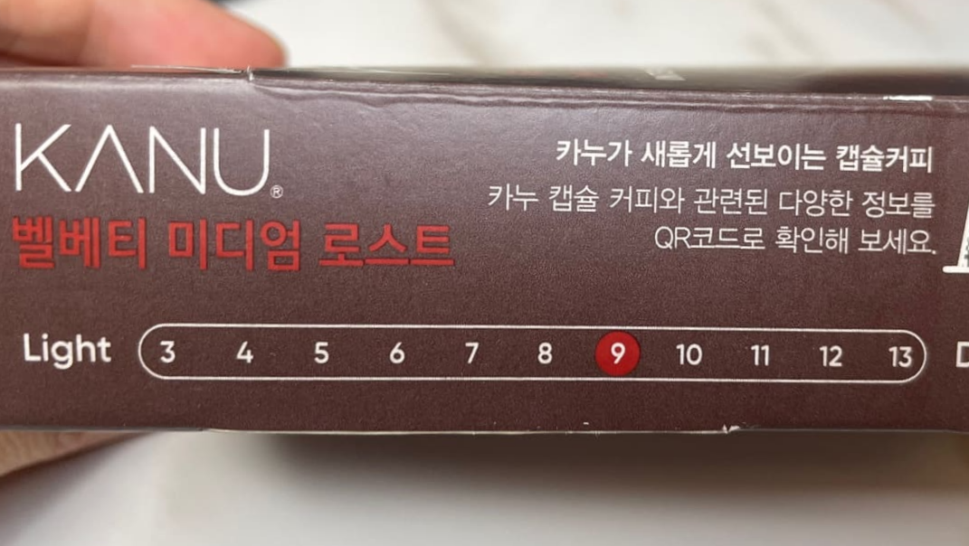 벨베티미디엄로스트는 부드럽고 감미로운 캐러멜의 균형잡힌 향미를 담은 벨벳 같은 캡슐로 강도는 9이고 원두산지는 코스타리카, 콜롬비아, 과테말라랍니다.