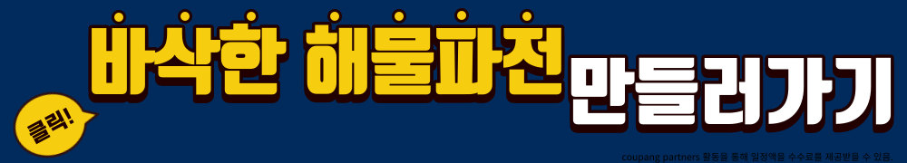 며칠 전에 텔레비전에서 해물파전이 나오는 장면을 보고 아들과 신랑이 먹고 싶다고 해서 만들어봤습니다. 유명한 파전집 파전이 맛은 있지만 집에서 멀기도 하고 파전은 막걸리와 함께 먹어야 하는데 둘 중 한 사람은 마시지 못하니 그냥 집에서 먹기로 결정했습니다. 이번에도 편리한 쿠팡에서 해물믹스를 검색해서 바로 주문했답니다.