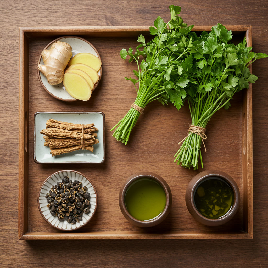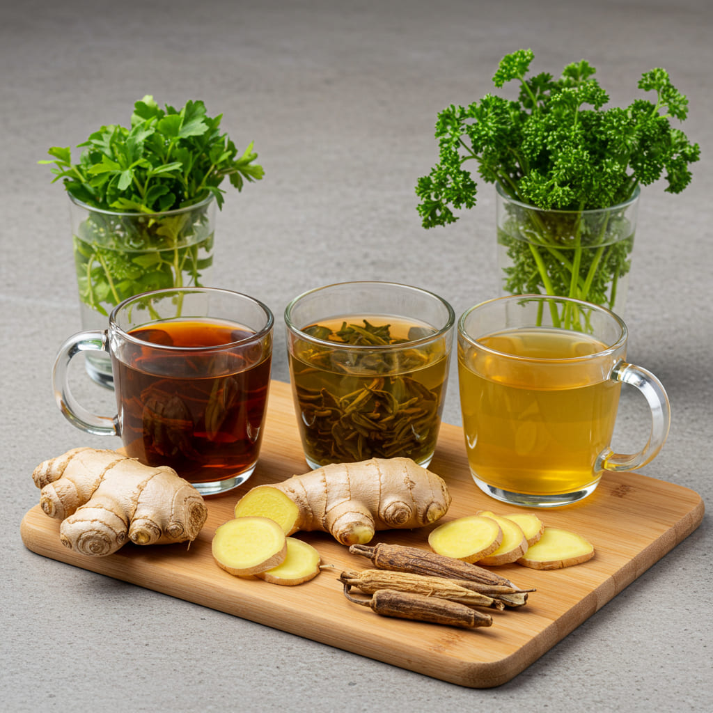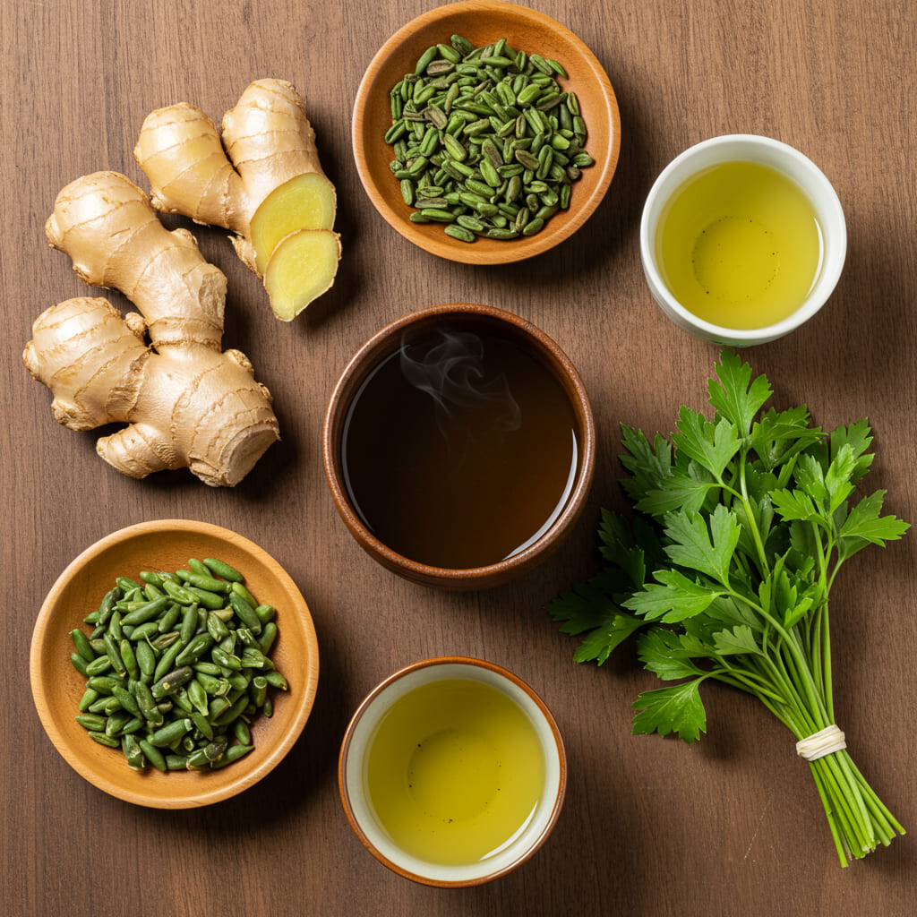 - 생강: 따뜻한 성질을 지닌 대표적인 식품으로, 혈액순환을 돕고 몸의 찬 기운을 몰아내 비염 증상 완화에 도움을 줍니다. 작두콩차에 생강 한 쪽을 넣어 함께 끓이면 좋습니다.