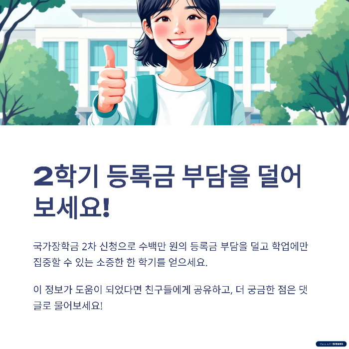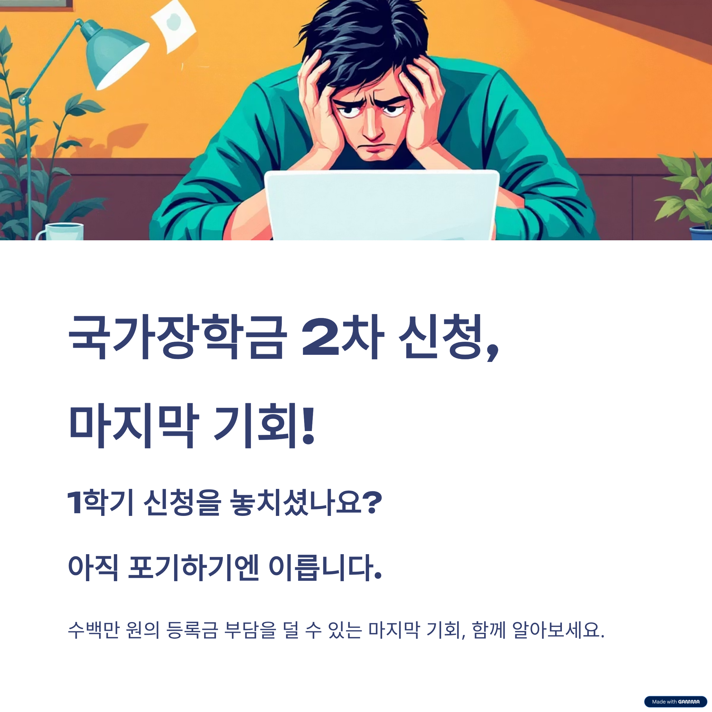하지만 여기서 포기하기엔 이릅니다. 우리에겐 아직 '2학기 2차 신청'이라는 마지막 기회가 남아있으니까요. 이번 기회만 잘 잡는다면, 수백만 원의 등록금 부담을 덜고 오롯이 학업에만 집중할 수 있는 소중한 한 학기를 얻게 됩니다.