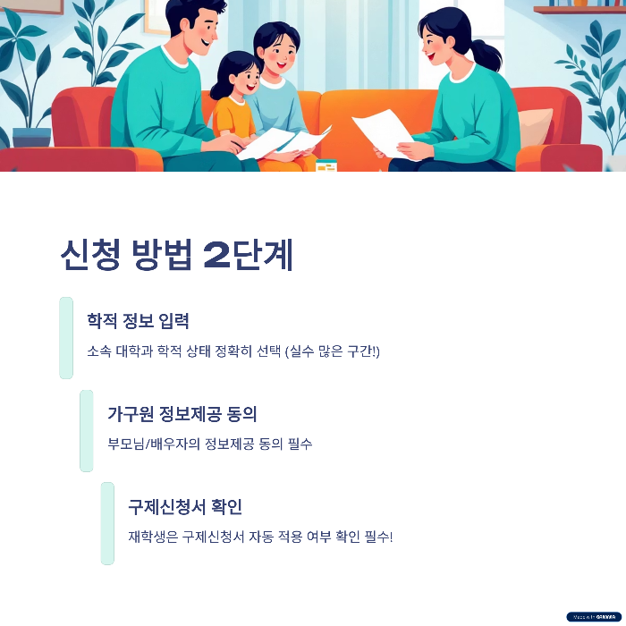 - 가구원 동의 누락: 신청을 다 해놓고 부모님의 정보제공 동의를 받지 않아 탈락하는 경우가 정말 많습니다. 신청과 동시에 부모님께 연락드려 동의를 완료하는 것이 가장 좋습니다.