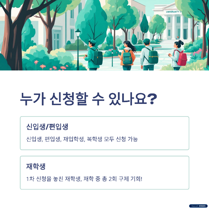 💡 재학생 주목! 재학생은 원칙적으로 1차 신청 대상이지만, 재학 중 총 2회에 한해 2차 신청으로 구제받을 수 있습니다. 이 기회를 꼭 활용하세요!