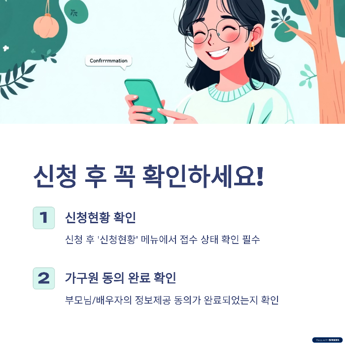 - 가구원 동의 누락: 신청을 다 해놓고 부모님의 정보제공 동의를 받지 않아 탈락하는 경우가 정말 많습니다. 신청과 동시에 부모님께 연락드려 동의를 완료하는 것이 가장 좋습니다.