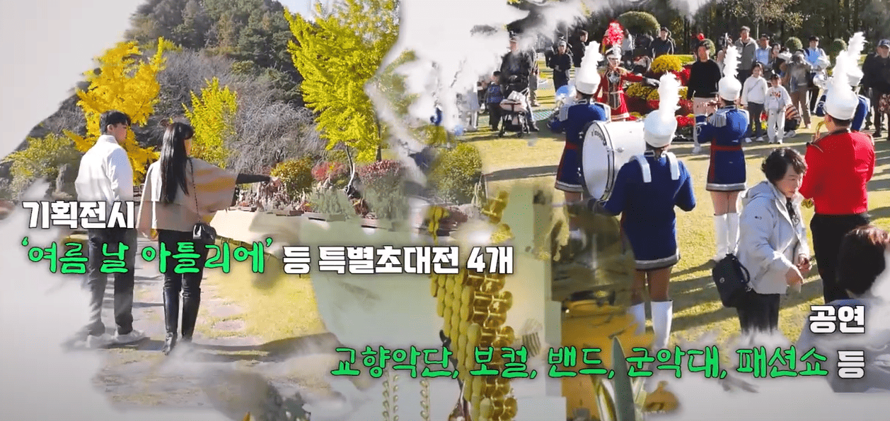 - 하이라이트: 단풍 산책로, 국화 조형물 전시, 문화 공연