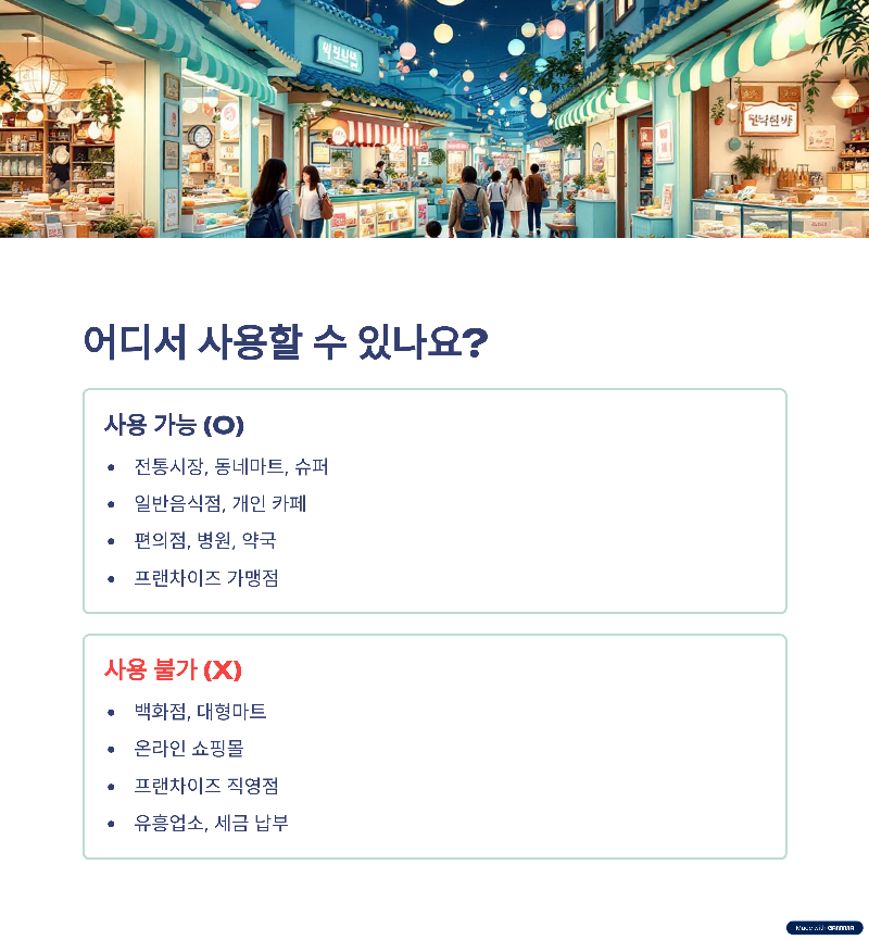 ❌ 민생회복지원금 사용처 불가능한 곳 (대형마트, 프랜차이즈X)