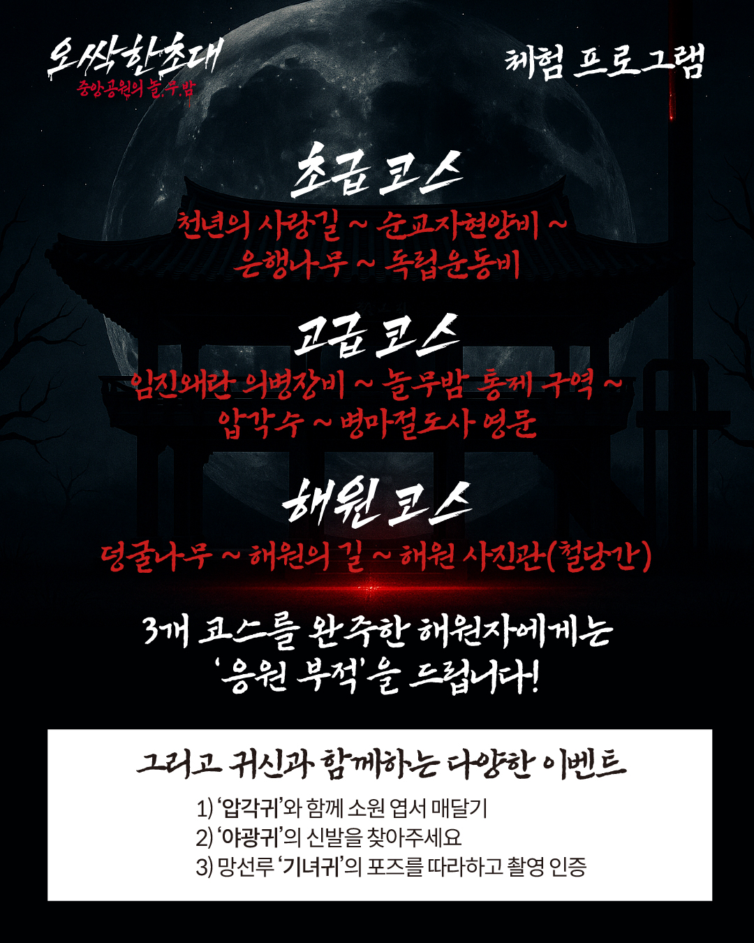 - ⏰ 운영 시간: 오후 4시부터 밤 10시까지 (호러 트레킹은 저녁 7시부터!)