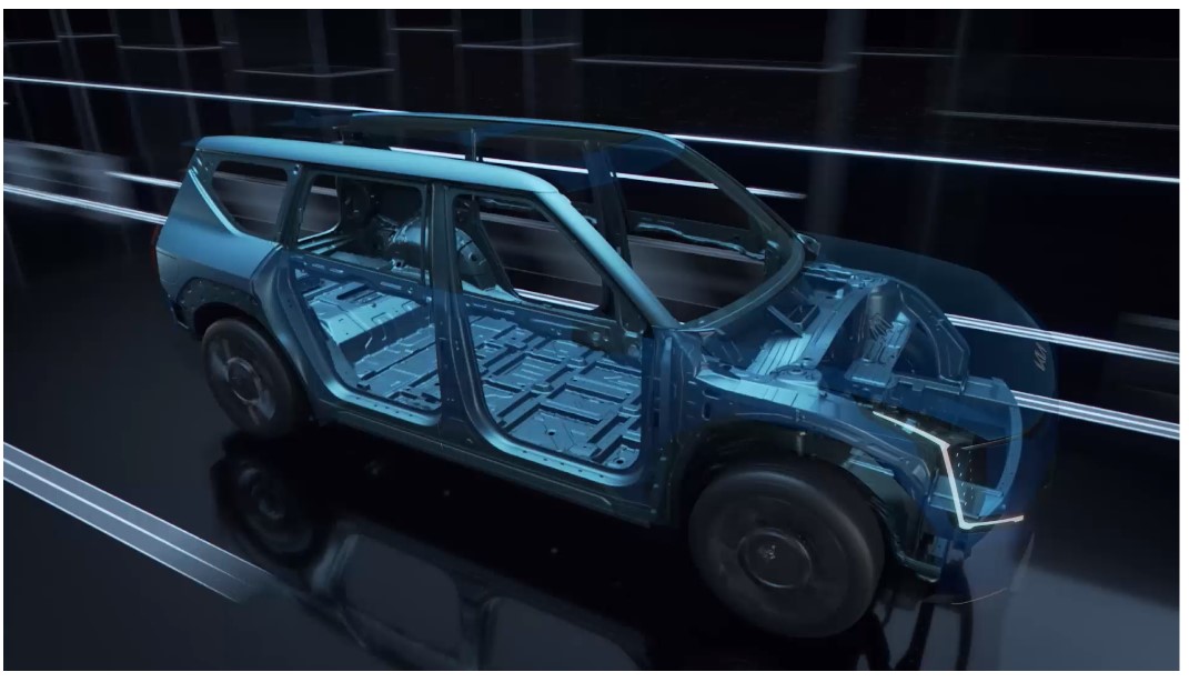 EV9의 주행거리는 1회 충전 시 500km이상 주행거리를 목표로 삼았고 2WD 모델 기준으로 1회 충전 시 541km 이상의 주행거리를 확보하였습니다. EV9의 최고 출력은 150 kW, 최대토크는 350Nm의 후륜 모터 기반의 2WD 모델과 최고출력 283kW, 최대토크 600Nm의 전후륜 모터 기반의 4WD 모텔로 출시될 예정입니다. 4WD 모델은 부스트 옵션을 추가하면 최대 토크를 700Nm까지 올릴 수 있고 제로 100까지 약 5.3초 만에 도달할 수 있다고 합니다.